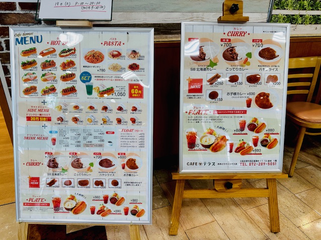 メニューは種類豊富なホットドッグとドリンク、パスタ・カレーがあり、ポテトやチキンなどサイドメニューも充実していました。