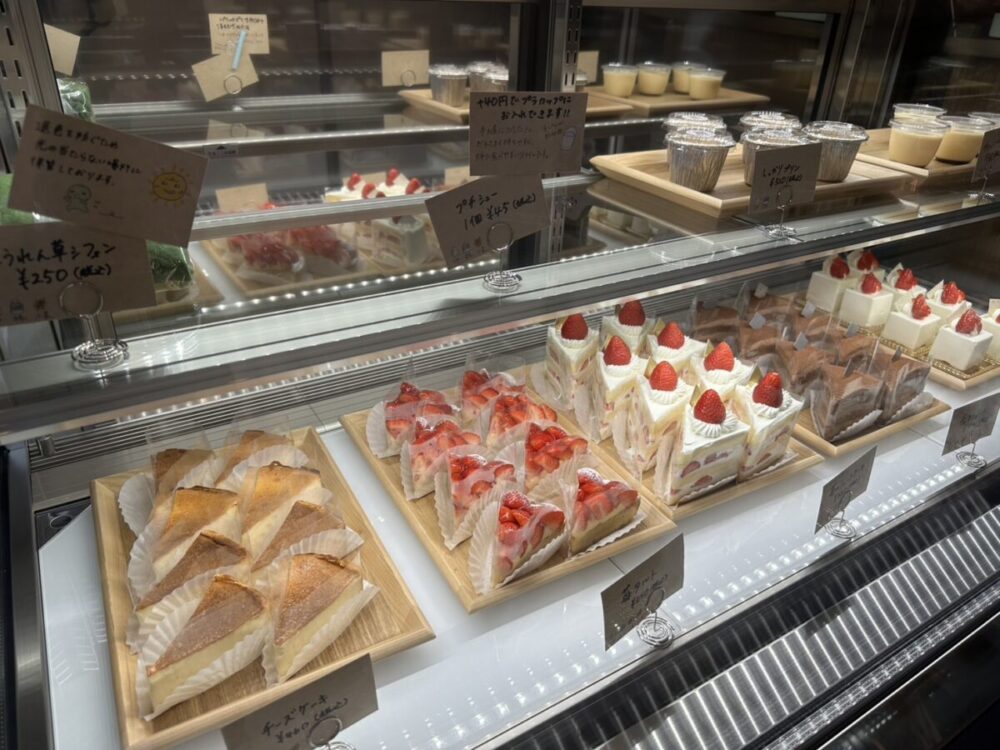 ショーケースに並んだ彩り豊かなケーキがラインナップ。