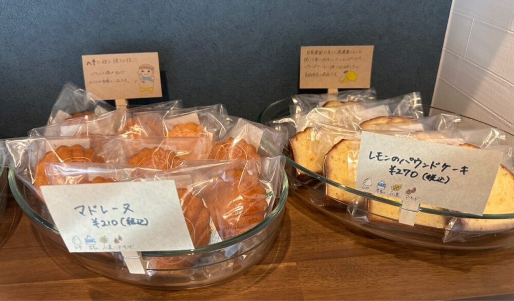 さらに店内には、マドレーヌやレモンパウンドケーキといった、ちょっとした手土産にもぴったりの焼き菓子も充実しているんですよ。