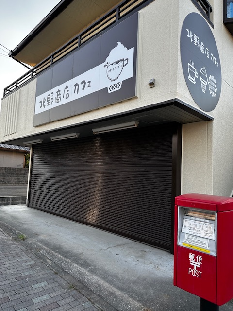大阪狭山市・池の原の交差点近く、北野商店にカフェの看板が付いていましたよ~!『北野商店 カフェ』ができるみたいです。