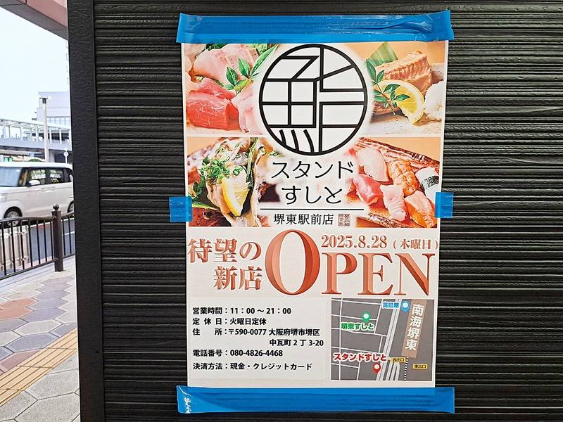 「スタンドすしと堺東駅前店」が、8月28日にGRAND OPEN!