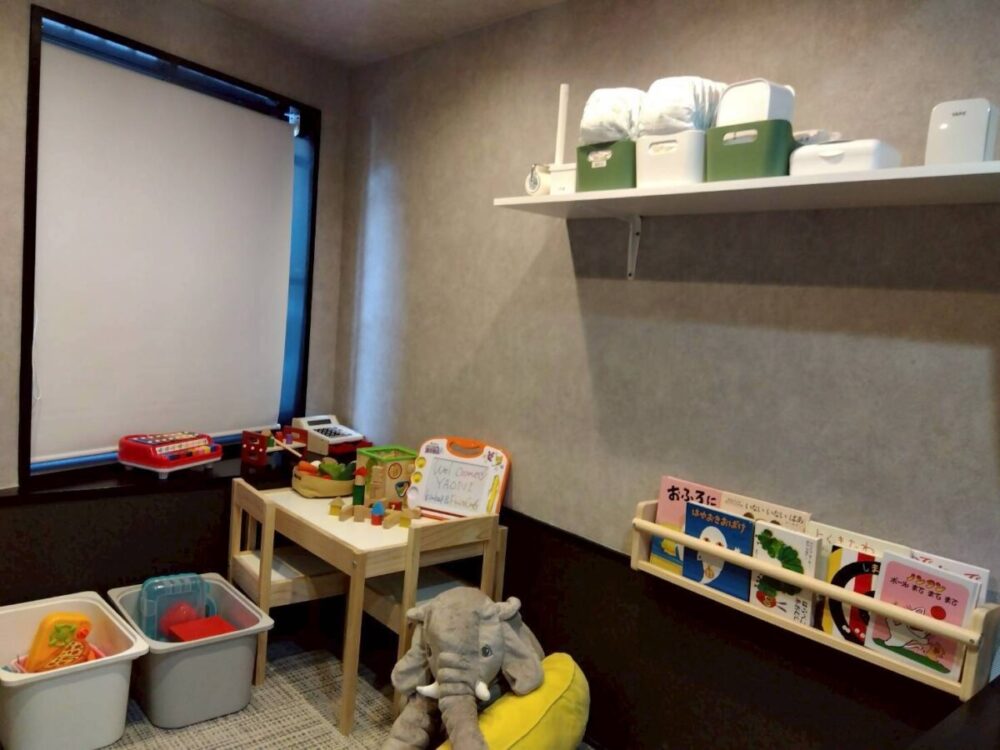 店内はシックで清潔感のあるカウンター8席・奥にキッズスペースとTOILETがあります☆