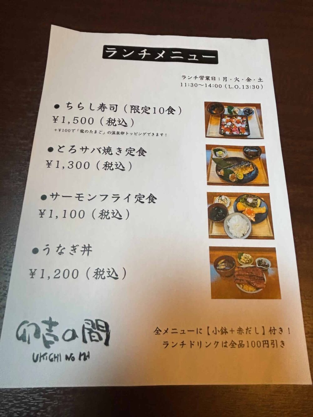 [定休日] 木曜日