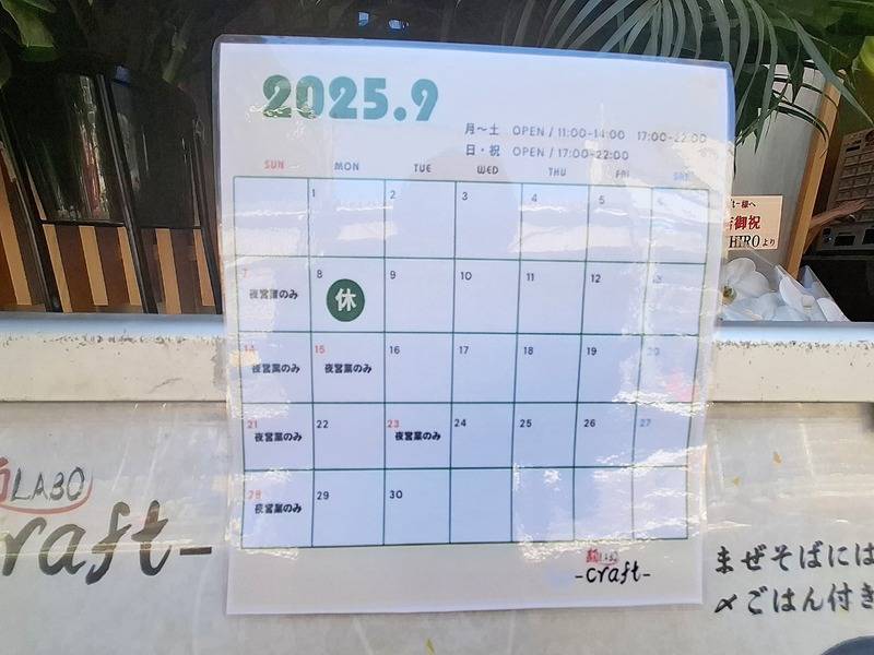 9月1日、GRAND OPEN!「麺LABO-craft-」
