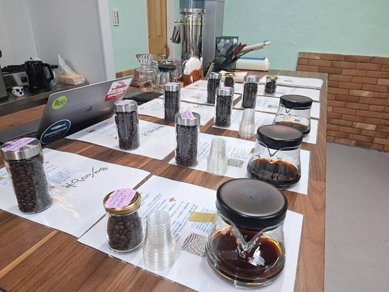 焙煎された珈琲豆はカウンターに並び、どこの国の珈琲豆なのか分かりやすく書いています。