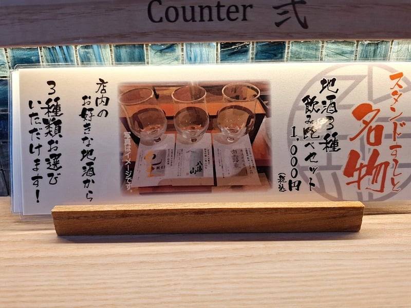 「地酒3種飲み比べセット」税込み1000円は、「スタンドすしと」の名物でおすすめだそうです!