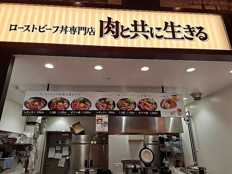 ららぽーと堺1階にあるローストビーフ丼専門店「肉と共に生きる」。
