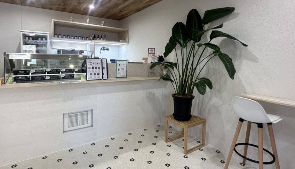 店内は、白を基調とした壁と可愛らしい花柄のタイル床が印象的な、明るく清潔感あふれる空間です。
