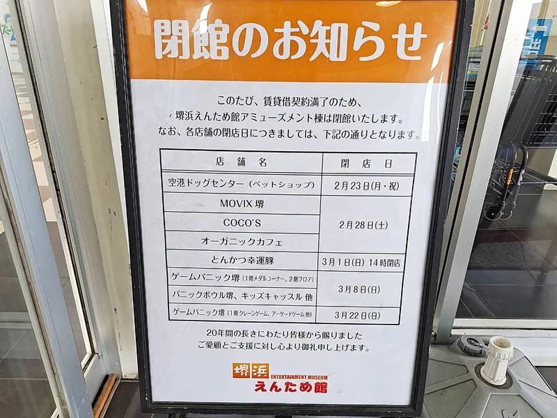 [住所]大阪府堺市堺区築港八幡町1−1 堺浜エンタメ館1階