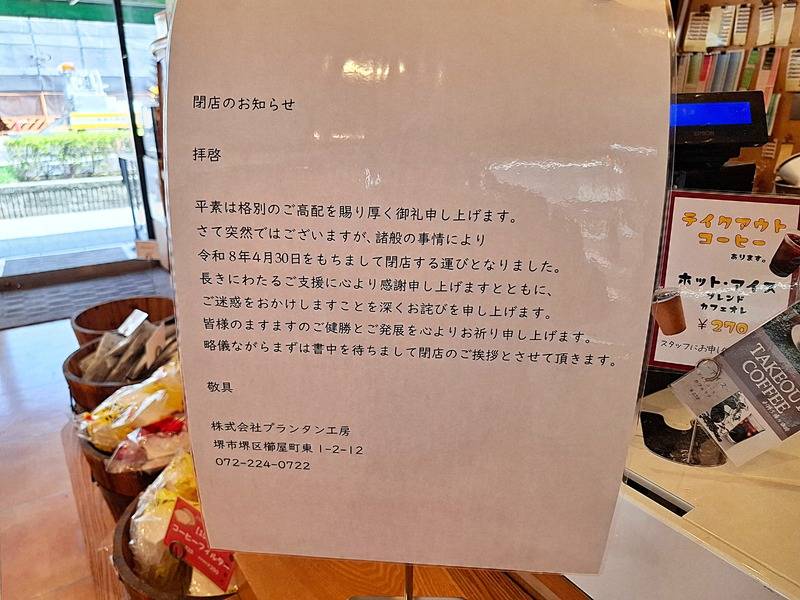 堺市で長年親しまれてきた「創作工房プランタン本店」が、2026年4月30日をもって閉店することがわかりました。