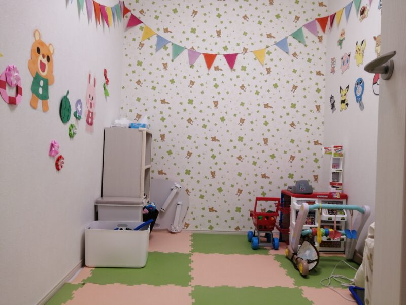 キッズルームも完備。保育士さんが在籍されていて、ママが施術中、こちらでお子様は保育士さんと遊べます☆キッズルームの様子は施術中でも院内のスクリーンで確認できます。ママも安心して施術してもらえますね!
