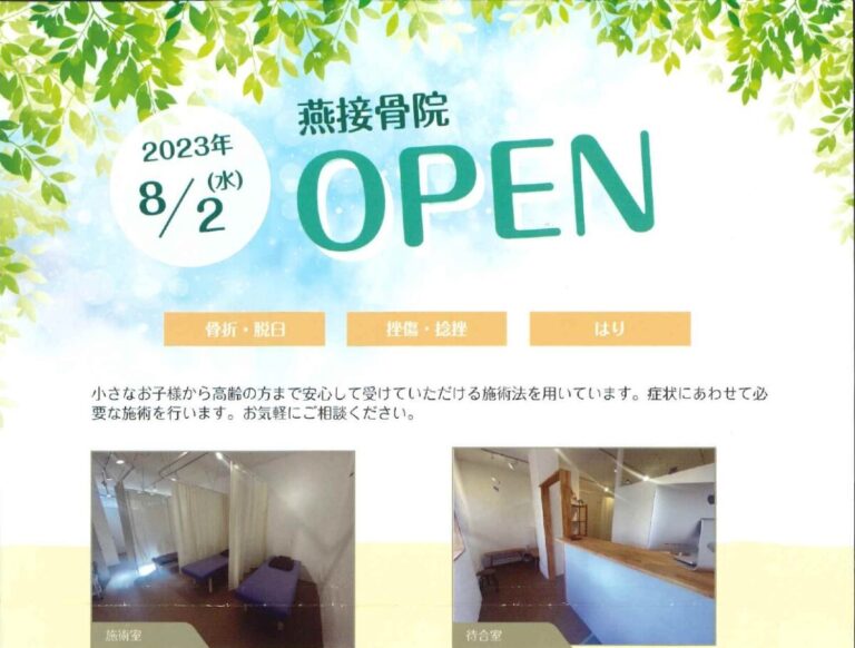 「燕つばめ接骨院」が8/2にOPENしました!