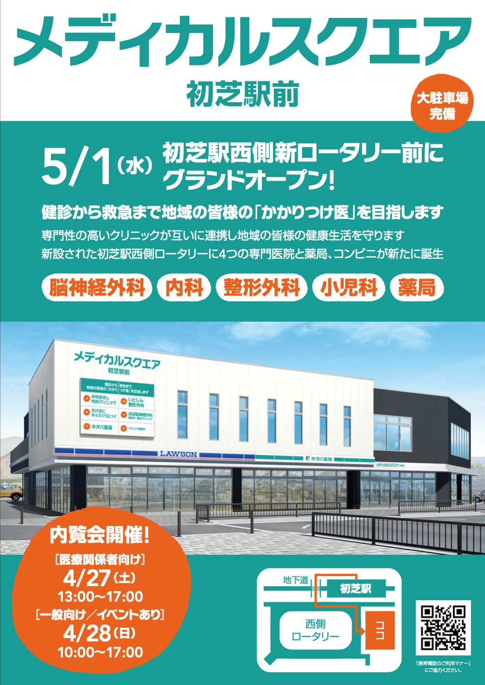 5/1(水)、堺市東区・初芝駅西側新ロータリー前に「メディカルスクエア初芝駅前」がグランドオープン!