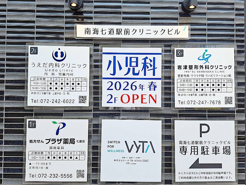 6月2日(月)、南海七道駅前クリニックビル2階に「うえだ内科クリニック」が開院。