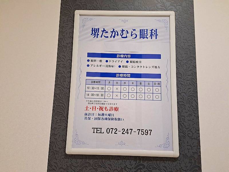土・日・祝も診察しており、平日に診察に行けない方にも通いやすい「堺たかむら眼科」。