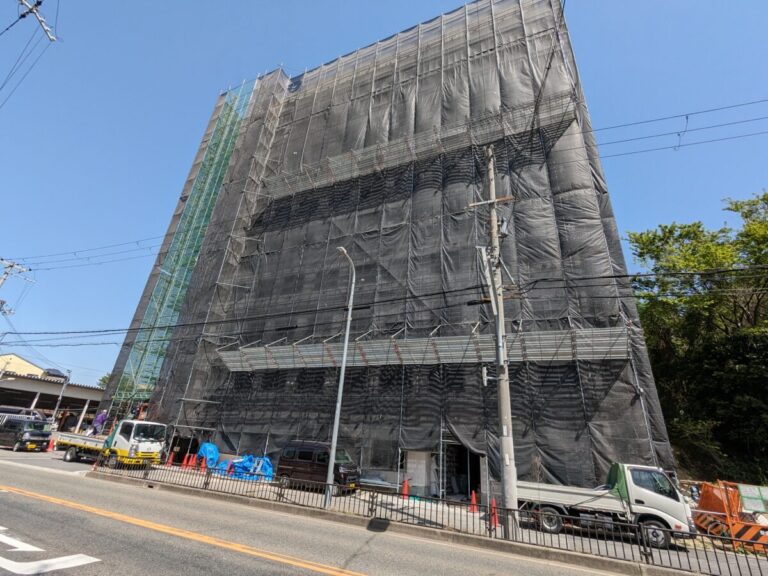 賢明学院の前に大きな建物が建設中です。