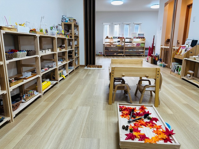 年齢ごとにたくさんのモンテッソーリ教具がありましたよ!1歳~就学前までベビー・プレ・モンテと3つのクラスがあるそうです。