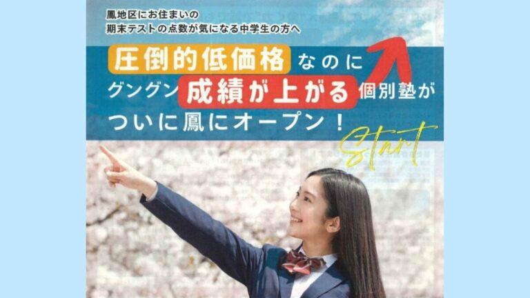 圧倒的な低価格で質の高い指導を両立させた「個別指導塾 まなびテラス 鳳教室」が、鳳に新しく開校しましたよ!