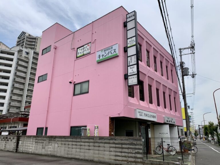 北区・OsakaMetro御堂筋線「北花田駅」から徒歩約5分の場所にある、ピンクのビルの3階です。