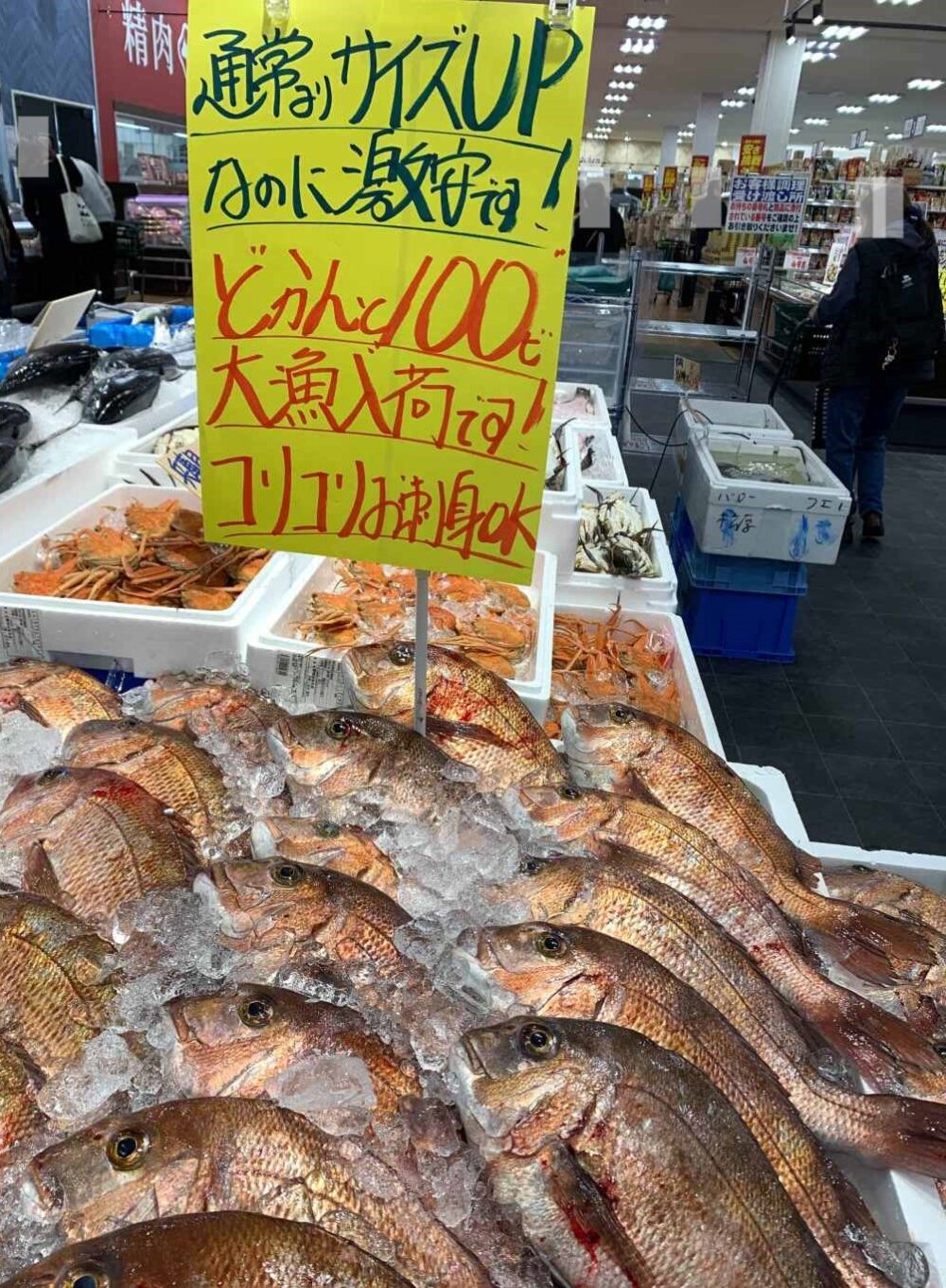鮮度に自信あり!のお魚大集合。この日は綺麗な鯛が並んでいましたよ!