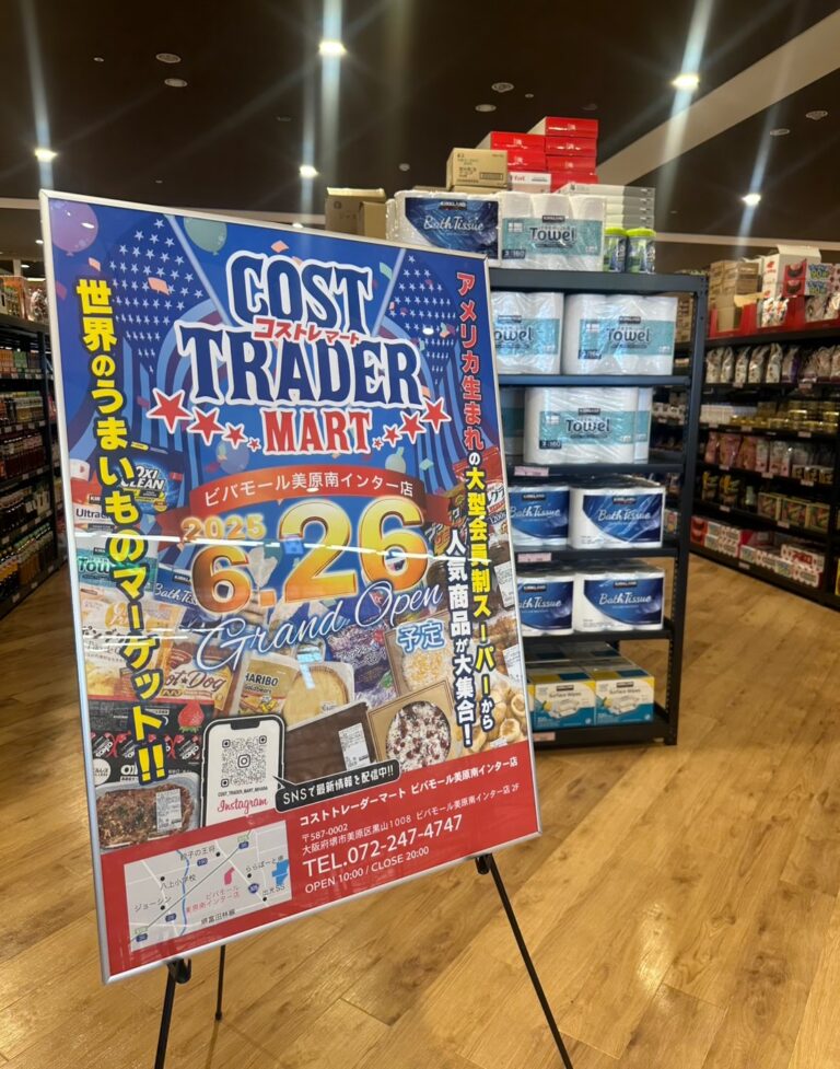 6月26日(木)、アメリカ生まれの大型スーパー『COST TRADER MART(コストトレーダーマート)』が、ビバモール美原南インター2階にオープンしましたよ~!