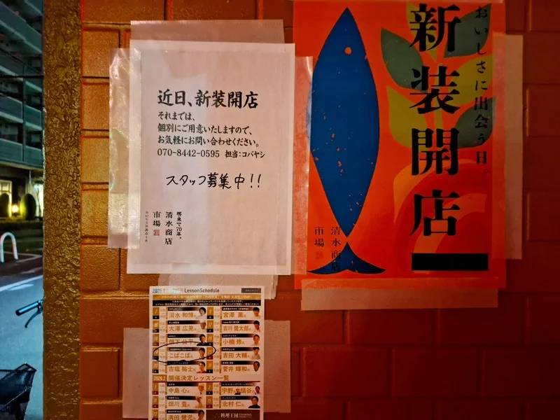 堺東で創業70年の歴史ある「清水商店市場」の店頭に、ポスターが貼られています。