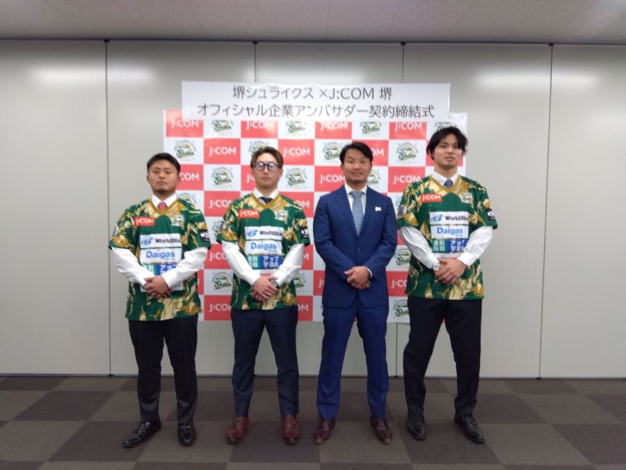 「堺シュライクス」と「J:COM 堺」が、地域活性化と次世代のチャレンジ支援を目指し、オフィシャル企業アンバサダー契約を締結!その契約締結式に、さかにゅー編集室も出席しましたよ!