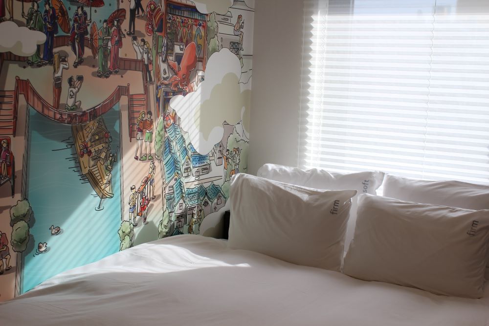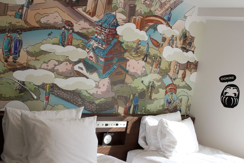 カラフルな壁には大阪城や御堂筋など、大阪ならではのモチーフがデザインされています!