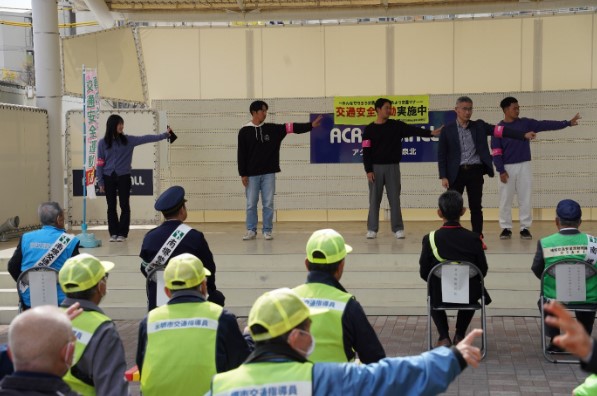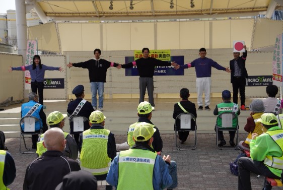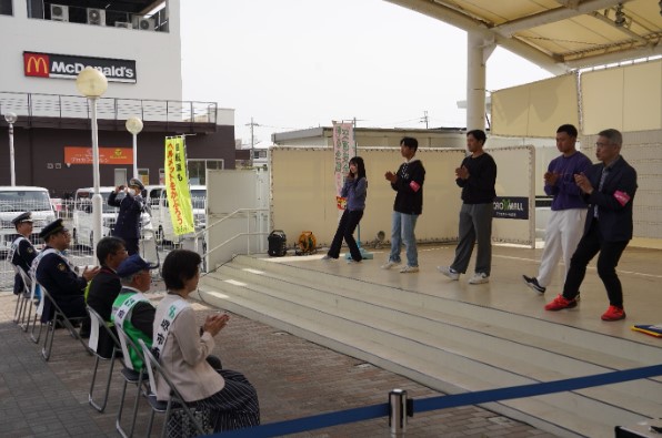 4月5日(土)、堺市南区にあるアクロスモール泉北・中央イベントひろばで、4月6日(日)~4月15日(火)まで実施される「春の全国交通安全運動」に先駆けた大阪府南堺警察署主催のキャンペーンが行われました。