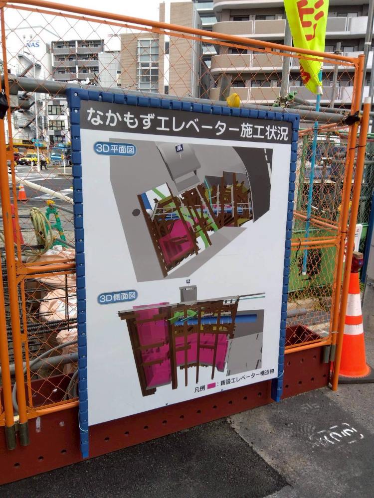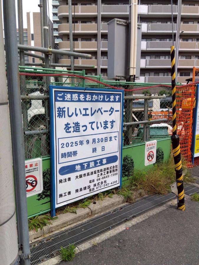 大阪メトロ「なかもず駅」側から、中百舌鳥町3丁交差点のときはま線を挟んだ向かいにエレベーター増設中です!