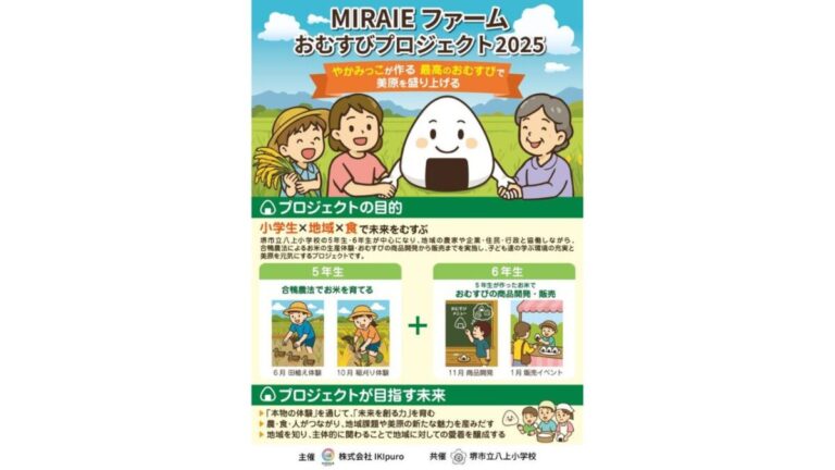 堺市美原区・「堺市立八上小学校」の5・6年生が、地域の農家さんや企業、住民、行政と連携して「最高のおむすびづくり」にチャレンジする「MIRAIEファーム おむすびプロジェクト2025」がスタートします!