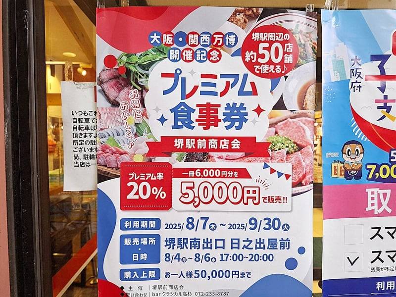 なんと堺駅周辺の約50店舗で使える「プレミアム商品券」が、8月4日から発売していました☆