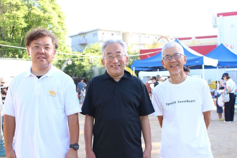 (左から、光陽会しんひのおだい 園長 内田雄介先生:新檜尾台小学校 校長 古谷俊之先生:新檜尾台 自治会長 小田寿彦様)