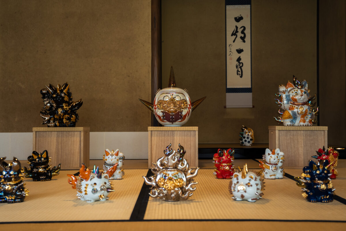 伝統的な茶室というキャンバスに、エッジの効いた作品が並ぶ光景は圧巻の一言でした。