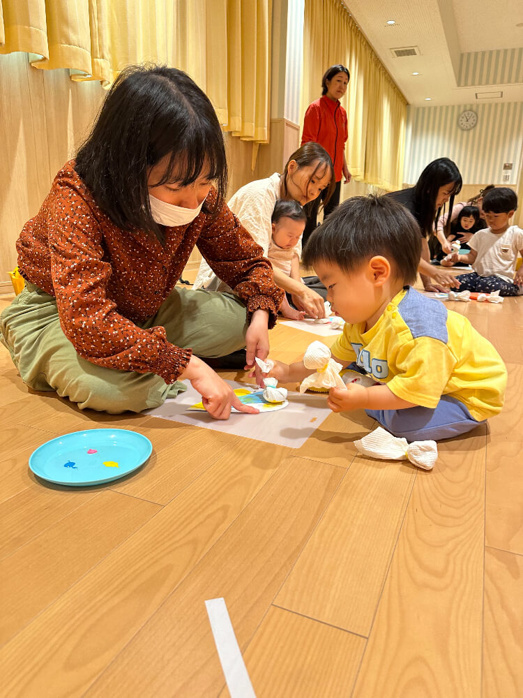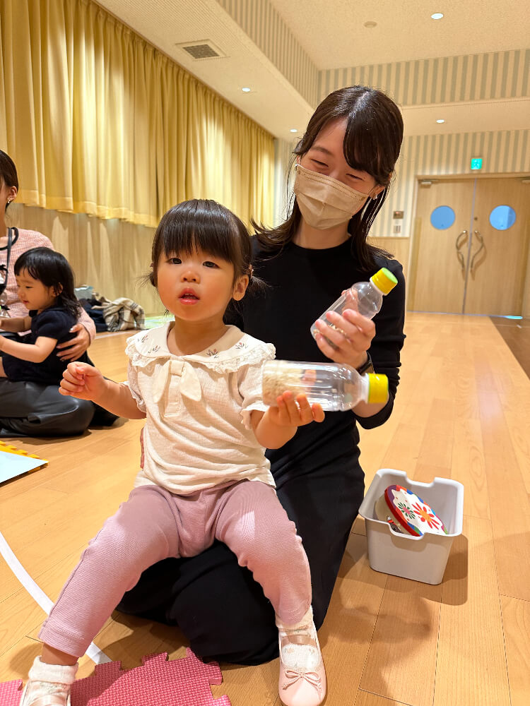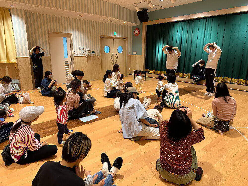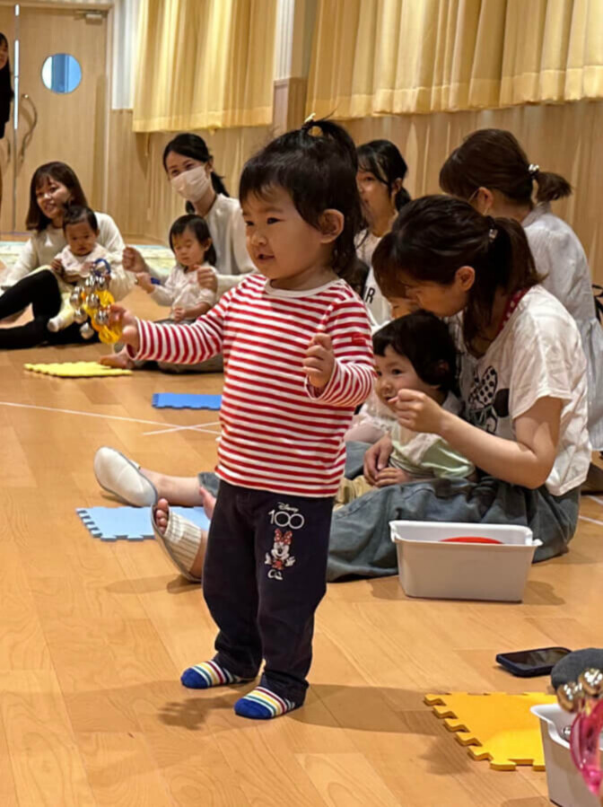 手遊び『Head Shoulders Knees & Toes』ではママ達と一緒に音楽に合わせて楽しみました。