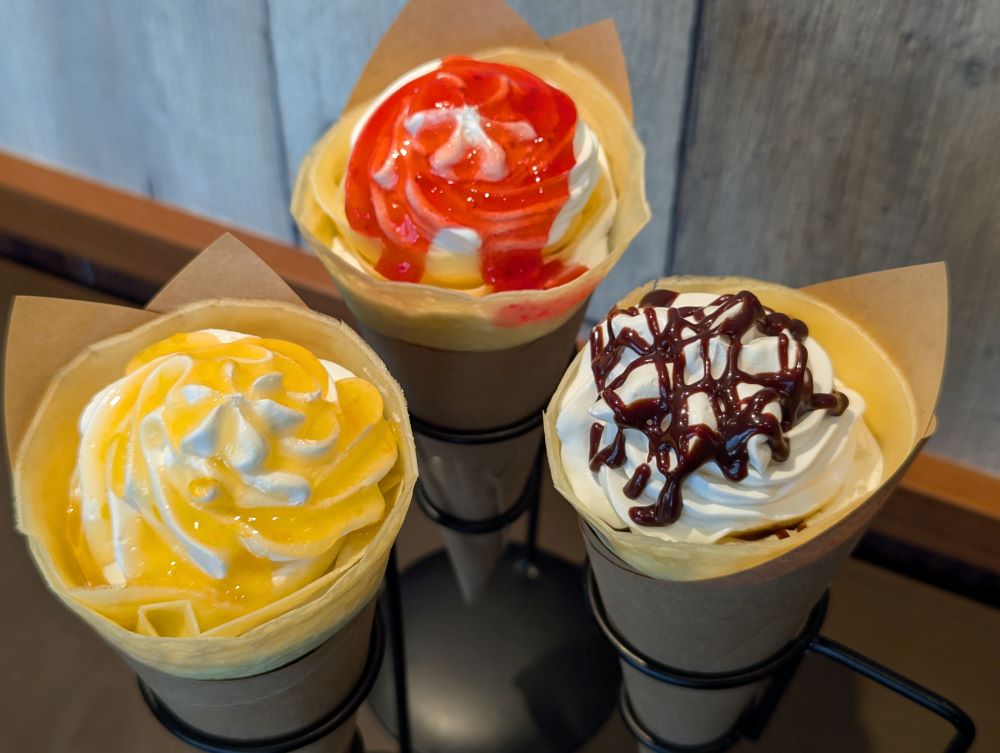 堺市東区・北野田駅近くで、旬の果物を使用したもちもち生地のクレープや、濃厚な味わいのソフトクリームなどが楽しめる人気店です。