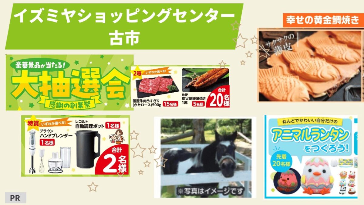 イズミヤショッピングセンター古市で、感謝を込めた「創業祭」を開催!期間中は、レシートを集めて豪華景品が当たる「大抽選会」をはじめ、子どもから大人まで楽しめるイベ […]
