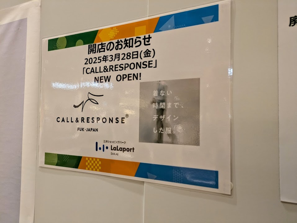 九州発のメンズブランド『CALL&RESUPONSE]』が3月28日(金)にららぽーと堺にオープンしますよ! 場所は国道309号線を美原・黒山方面へ進み […]