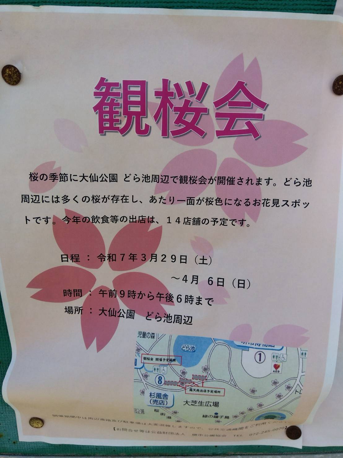 桜の季節ですね☆ 堺市堺区の大仙公園では3/29〜4/6までどら池周辺で観桜会が開催されます! こちらでは飲食などが14店舗ほど出店されるそうです! 【観桜会 […]