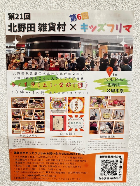 4月19日(土)・20日(日)堺市東区ベルヒル北野田にて『第21回 北野田 雑貨村・第6回 キッズフリマ』が開催されます♪今回も雑貨販売やワークショップ・子ども […]