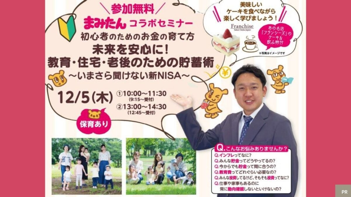 12/5(木)に堺市北区の堺市産業振興センターにて、 まみたんコラボセミナー 『初心者のためのお金の育て方 マネーセミナー』が開催されますよ~!! 初心者のため […]