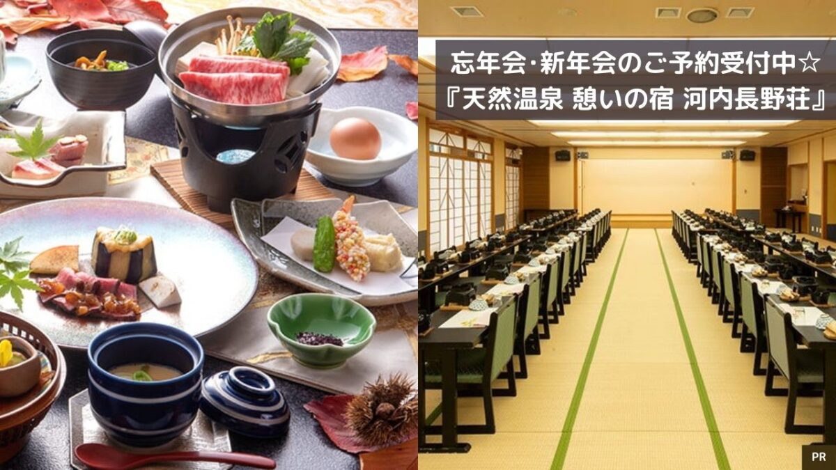 忘年会・新年会のご予約受付中☆料理長こだわりの会席料理に舌鼓♪『天然温泉 憩いの宿 河内長野荘』