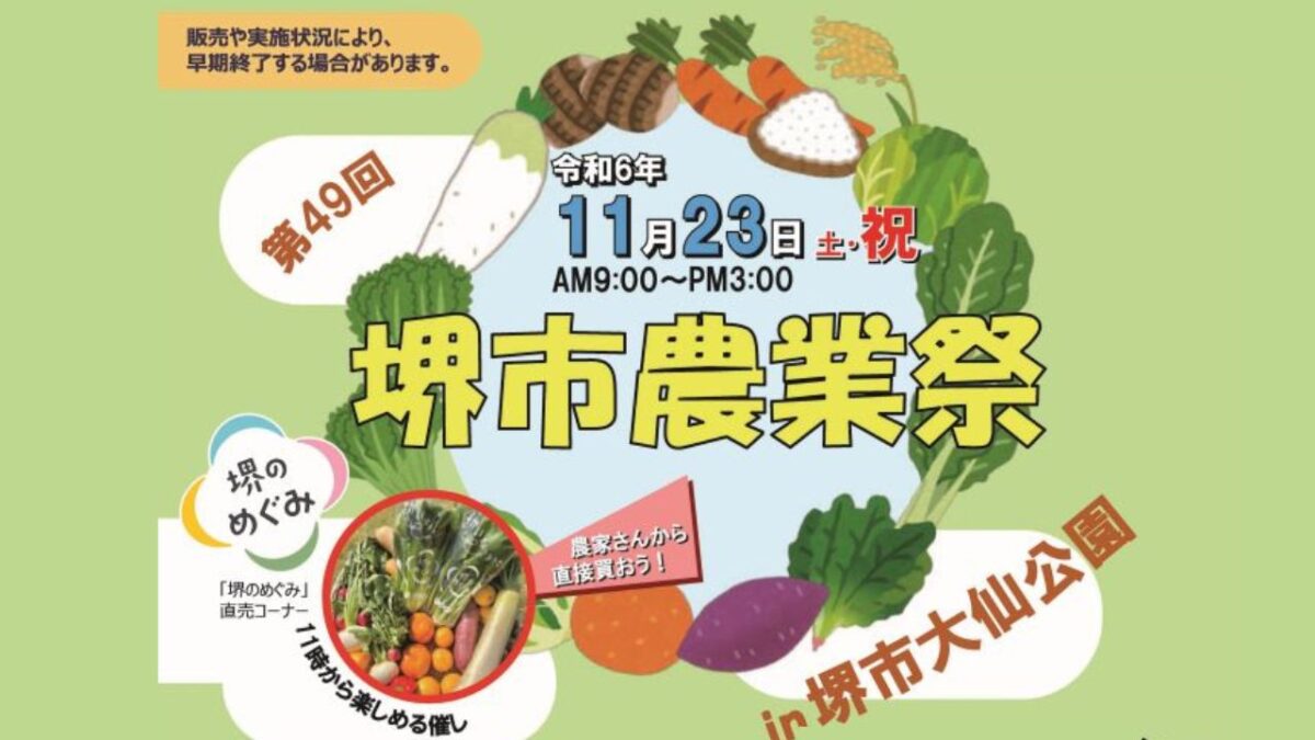 11/23(土・祝)に堺区の大仙公園で第49回堺市農業祭が開催されますよ!! 堺の農産物をはじめ、堺の伝統産品の販売やキッチンカー、トラクター試乗、スタンプラリ […]