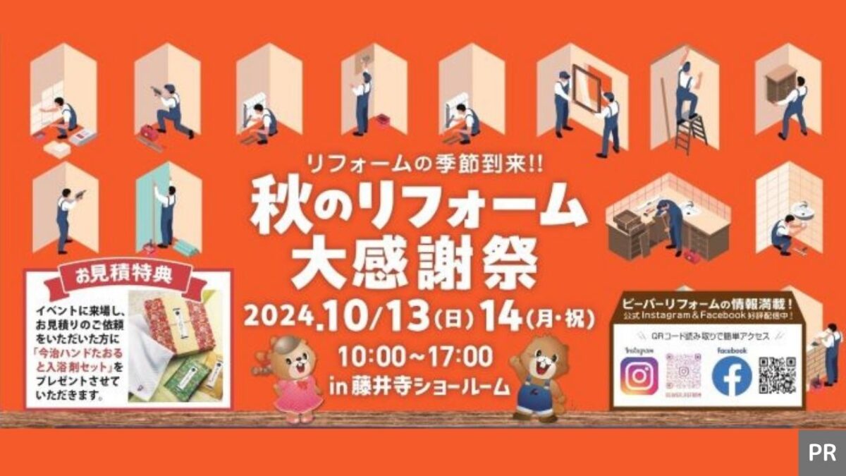 藤井寺市にあるビーバーリフォームにて、2024年10月13日(日)・14日(月・祝)に『秋のリフォーム大感謝祭』が開催されます! WEBでは紹介できない驚き価格 […]