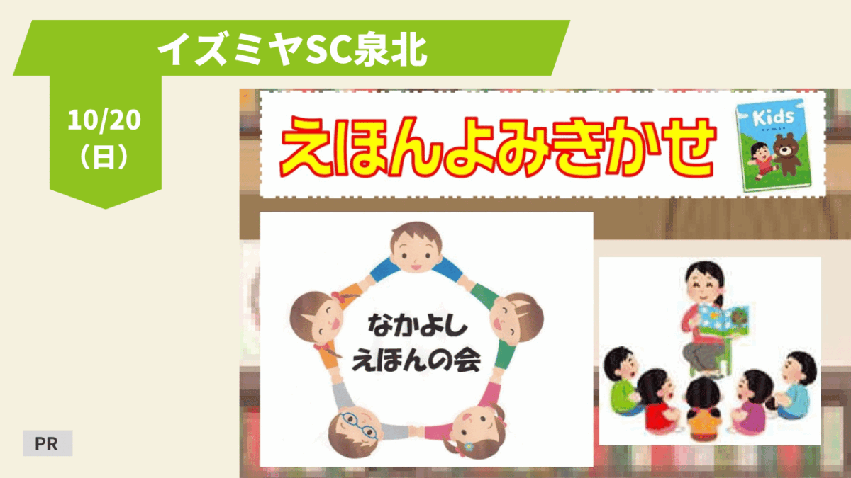 10/20(日)堺市中区のイズミヤSC泉北 2階吹き抜け前催事場で絵本の読み聞かせイベントが開催されます! なかよしえほんの会 『なかよしえほんの会』による絵本 […]
