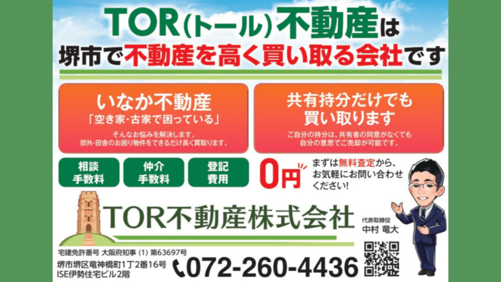 不動産を高く買い取りする会社、TOR(トール)不動産をご紹介! 堺市近郊や全国各地で幅広く買い取りを行っています。 数千件の売買経験に基づく最適な方法でご売却を […]