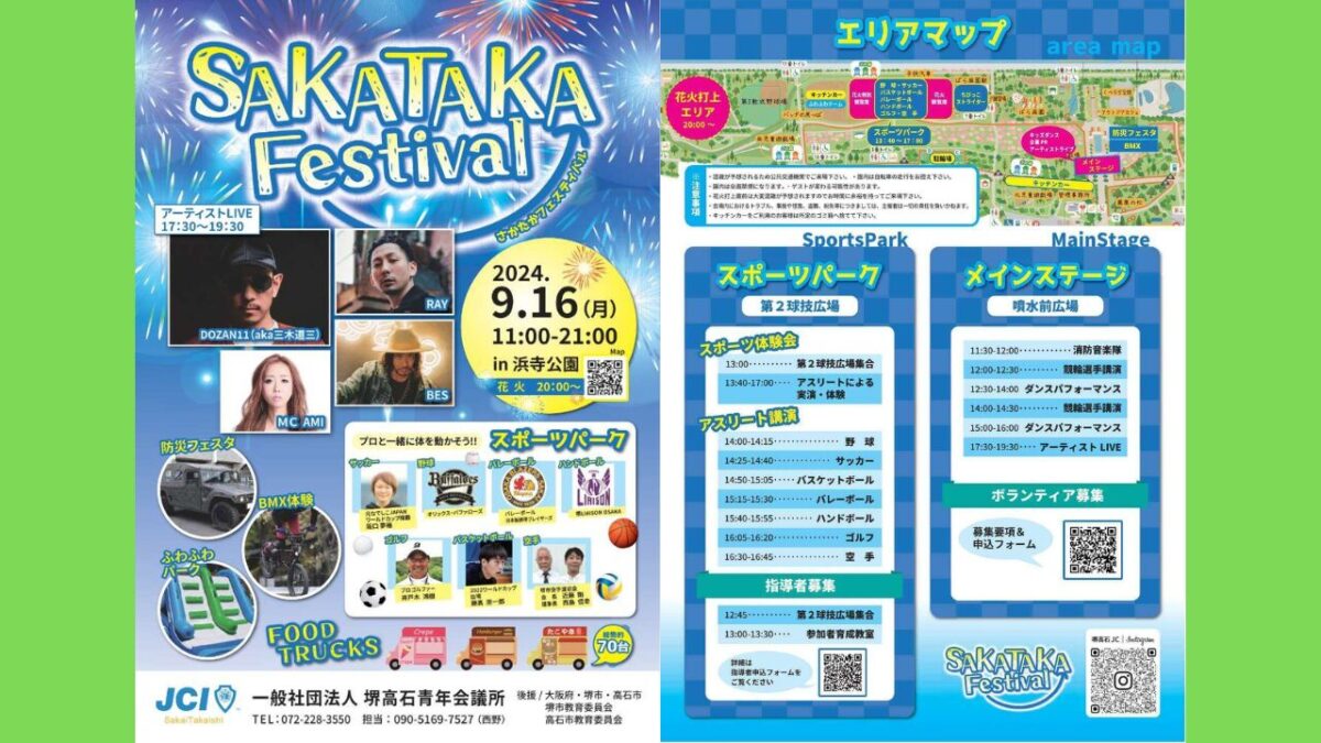 9/16(月)に堺市西区・浜寺公園で『SAKATAKA FESTIVAL』が開催されます。 会場では、アスリート講師による様々なスポーツ体験が可能だそうです。 […]