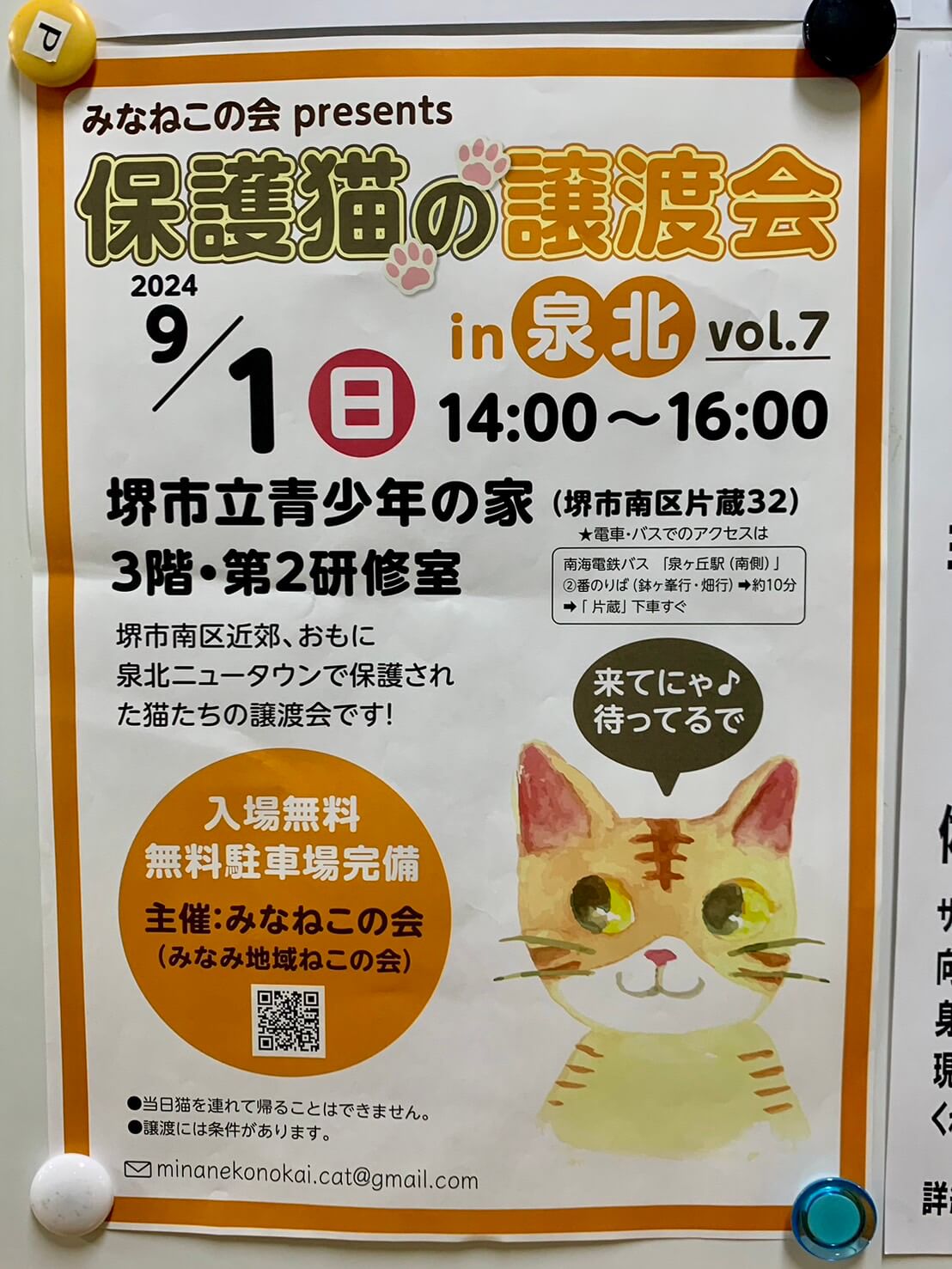 堺市南区・堺市立青少年の家で主に泉北ニュータウンで保護された猫たちの譲渡会『保護猫の譲渡会』が開催されます♪ 『保護猫の譲渡会 in 泉北』 【開催日】 9月1 […]