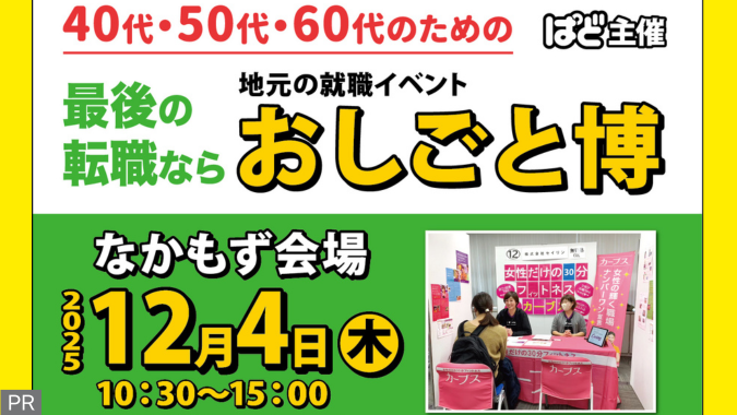 最後の就職なら、地元の就職イベント おしごと博 12/4日(木)堺市北区・堺市産業振興センターにて、ぱど主催・40代・50代・60代のためのおしごと博を開催しま […]