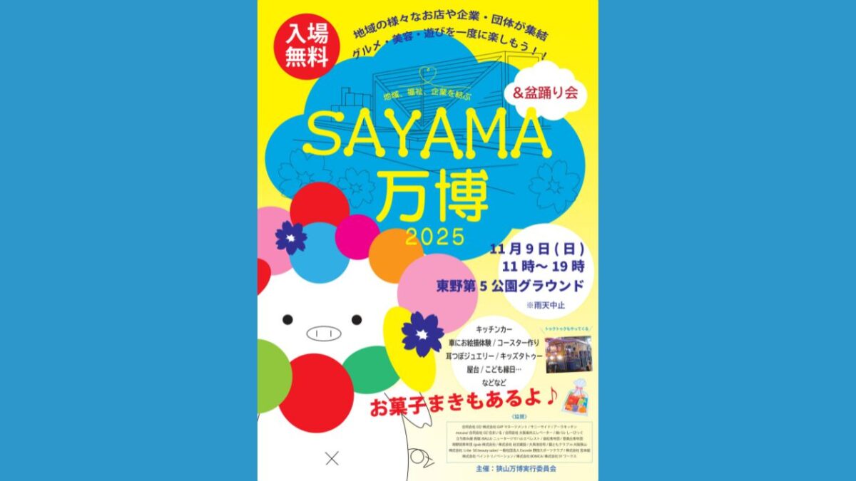 「今週末、家族でどこかに出かけたいけど、子どもも大人も楽しめるイベントはないかな?」とお考えの方へ! 大阪狭山市の地域交流をテーマにした一大イベント「SAYAM […]